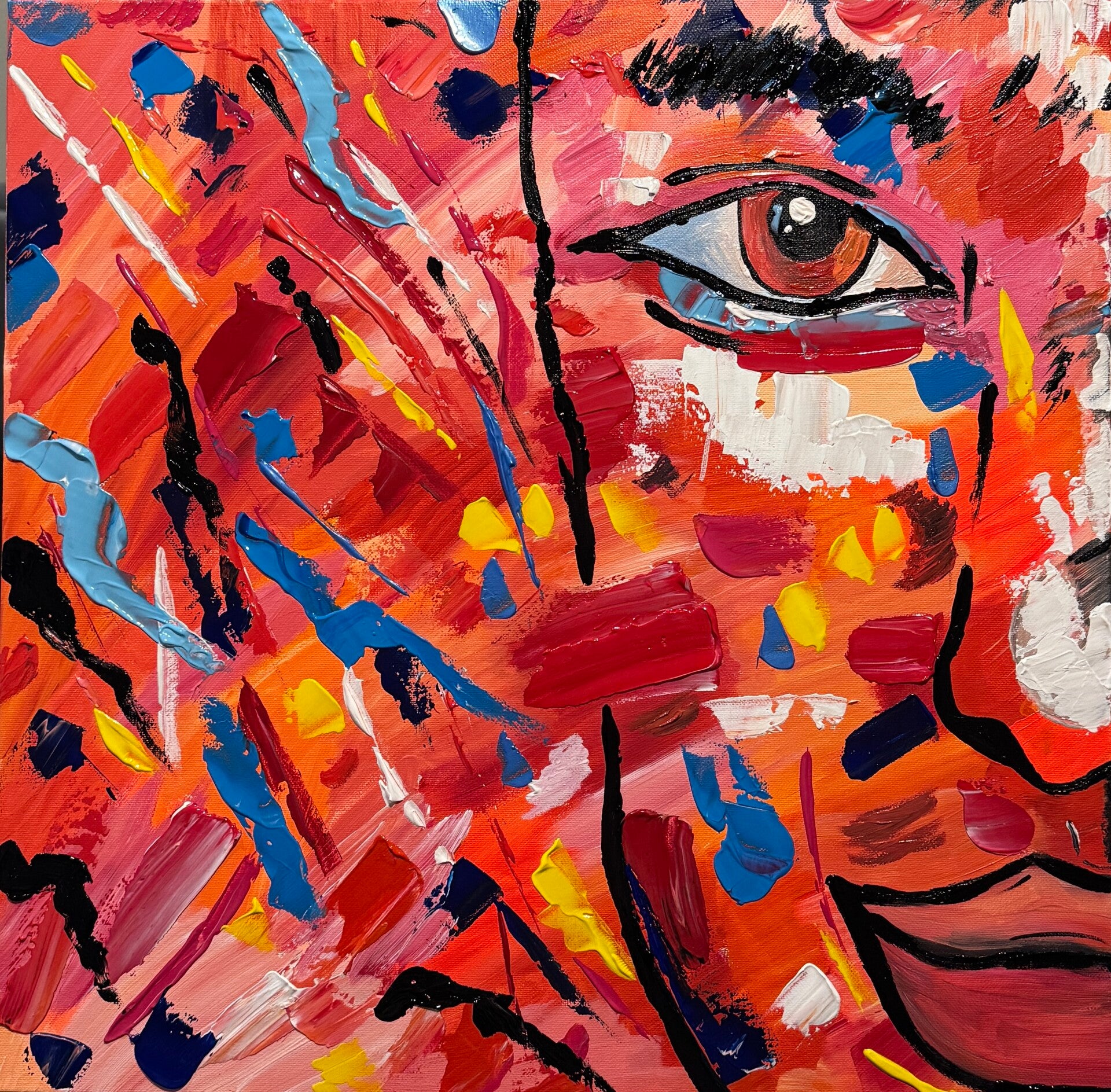 Red Sight Original Acrylic Painting on Canvas 20x20 "Framed"