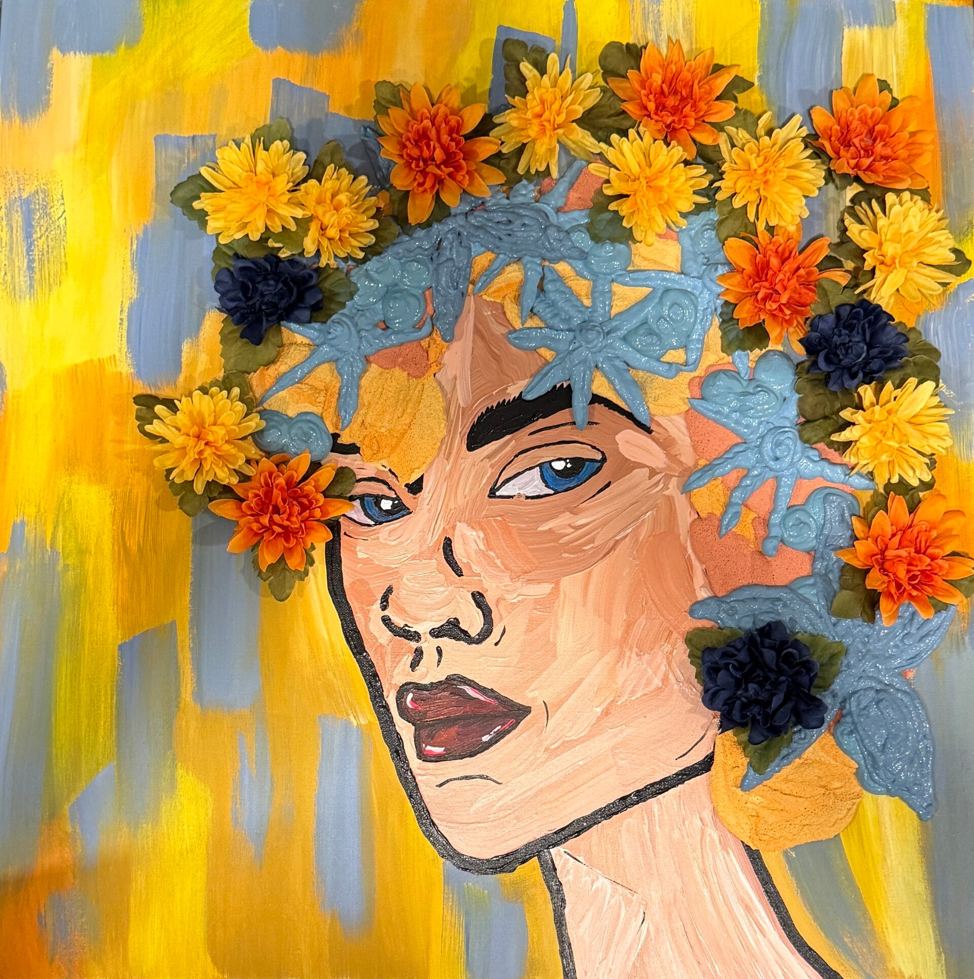 Bright Flower Original Acrylic Painting 24x24 on Canvas